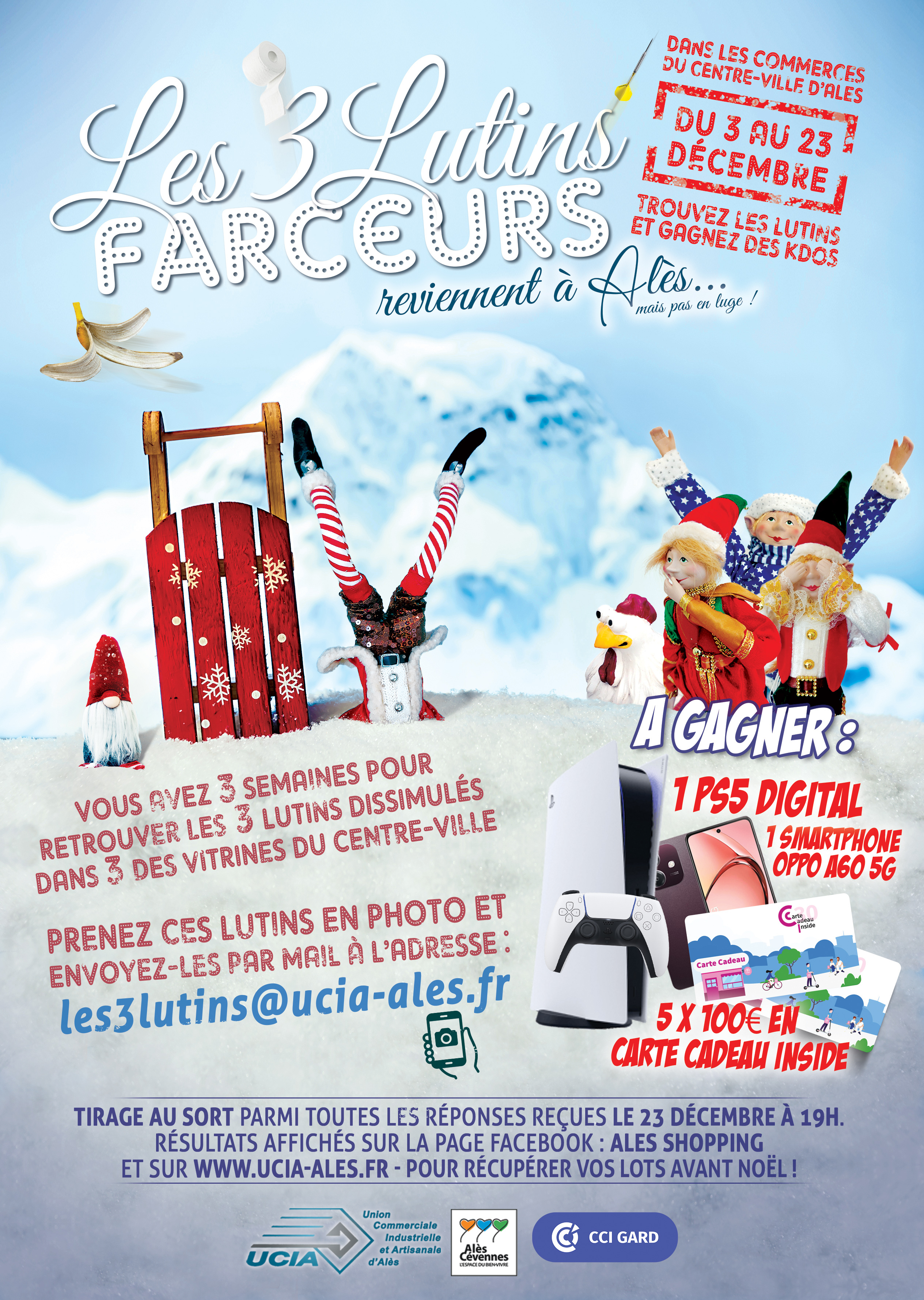 L’UCIA organise un jeu gratuit et sans obligation d’achat intitulé « Les 3 Lutins Farceurs » , se déroulant du 3 décembre au 23 décembre 2025.
